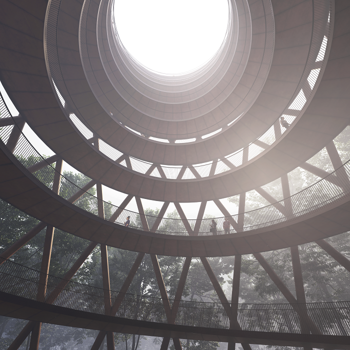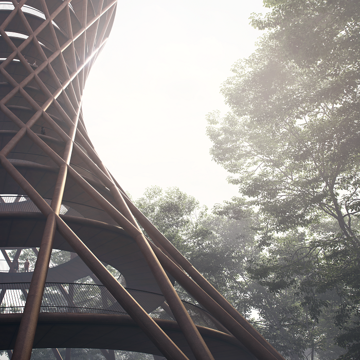 De recreatieplaats bestaat uit een 45 meter hoge uitkijktoren en een 600 meter lange wandeling door de toppen van de bomen. Zowel de toren als de boomtopwandeling is te bereiken via een oplopende helling, zodat het recreatiegebeuren voor iedereen toegankelijk is.