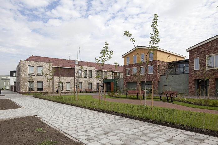 In Rietveld in Alphen aan den Rijn wonen mensen met dementie in een dorpsachtige setting. Het ontwerp is erop gericht bewoners een thuisgevoel te geven. Zodat ze zich veilig voelen, de weg weten en zoveel mogelijk in de buitenlucht bewegen.