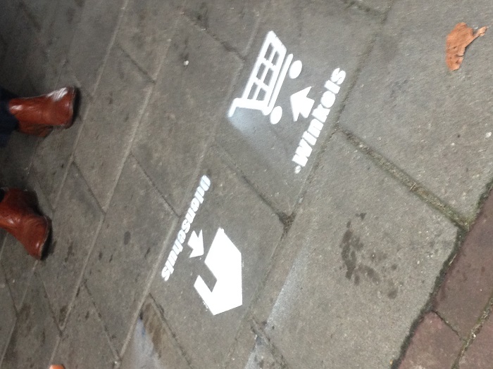 Speciale stoeptegels helpen mensen met dementie om zelf boodschappen te blijven doen. De veilige route loopt tussen het Odensehuis, een inloophuis voor mensen met dementie naar het winkelgebied van de Stadionweg in Amsterdam.