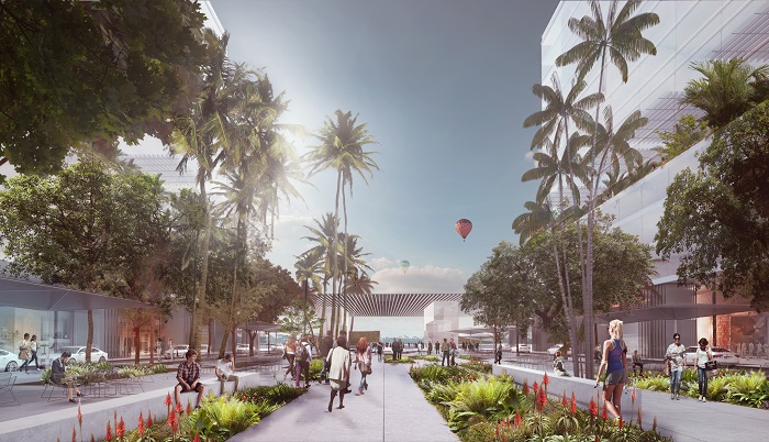 Het masterplan transformeert een braakliggend terrein van 19 hectare aan de kust van Lake Worth Lagoon, een kanaal dat de steden West Palm Beach en Palm Beach scheidt, naar een complex voor wonen, retail en ontspanning.