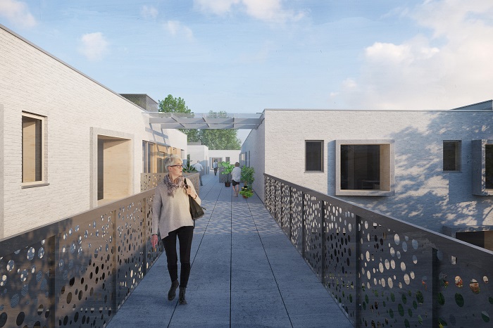 De buitengrenzen zijn sturend, maar onopvallend en vormgegeven door middel van hagen en poorten. De looproutes door de tuinen worden volledig vlak uitgevoerd, zodat een rollator of scootmobiel geen hinder ondervindt.