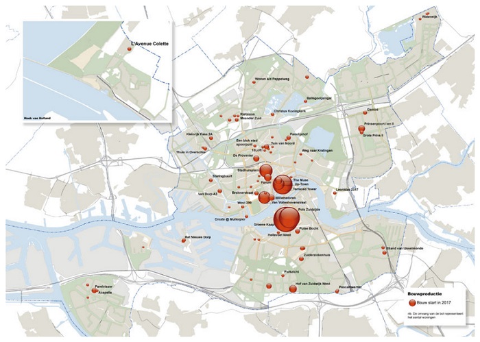 Het aantal van 3029 wordt gehaald met het bouwproject 010XL van Stebru op de hoek van de Brielselaan en Hellevoetstraat. Door de economische crisis viel de bouwproductie in Rotterdam de laatste jaren tegen. Veel bouwprojecten kwamen in die tijd niet rond en projecten kwamen niet verder dan de tekentafel. Die dip in de bouwproductie wordt nu opgevolgd door een piek.