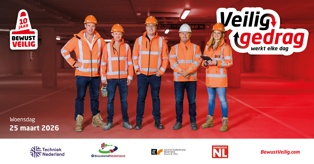 Veiligheid op de werkvloer verdient in de bouw, techniek, infra en onderhoud veel meer aandacht. Vandaar dat op 25 maart 2026 de tiende Bewust Veilig-dag plaatsvindt. Dit initiatief helpt bedrijven bij het voorkomen van ongevallen en de bewustwording daarover. Met praktische tools, interactieve quizzen en tips voor teams, wordt veilig werken tastbaar en bespreekbaar.