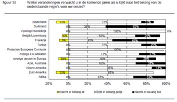Tweederde van de internationaal werkende bureaus verwacht dat de omzet in Duitsland toe zal nemen. Bijna de helft verwacht omzet uit Frankrijk. De belangrijkste buitenlandse markten voor kleinere en middelgrote bureaus zijn Engeland, Duitsland, België en Frankrijk, naast de overige EU landen.