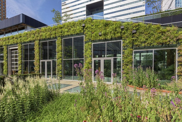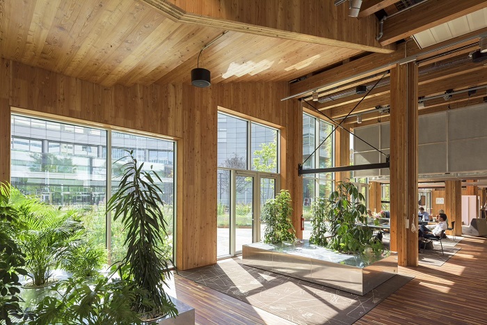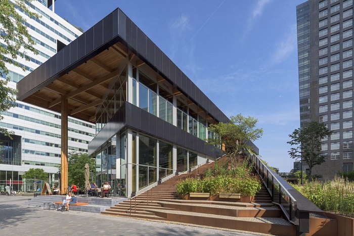 Door het ontwerp waarbij de natuurlijke belichting en schaduw optimaal benut wordt, verbeteren de hoog isolerende aluminium gevelelementenhet energiemanagement van het gebouw. De bank hoopt met het paviljoen een voorbeeld te zijn voor de circulaire gebouwen van de toekomst.