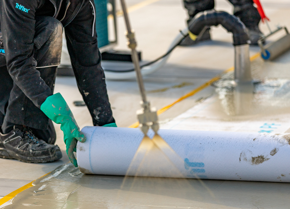 Voor de details op het dak werd gebruikgemaakt van het Triflex ProDetail systeem. Dit systeem is ontwikkeld voor het afdichten van hoeken, opstanden en andere kritische details. Het systeem omsluit het detail als een tweede huid. Zo krijgen lekkages geen kans.