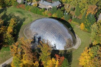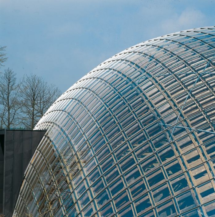 Architectenbureau Philippe Samyn en Partners ontwierpen het gebouw. In het ontwerp is onder andere gebruik gemaakt van tweehonderd jaar oude eiken. Het binnenste gedeelte van de koepel is vervaardigd van gewapend beton. De buitenkant bestaat uit een kader van samengebouwde bogen, bedekt met 1691 tegels van reflecterend glas.