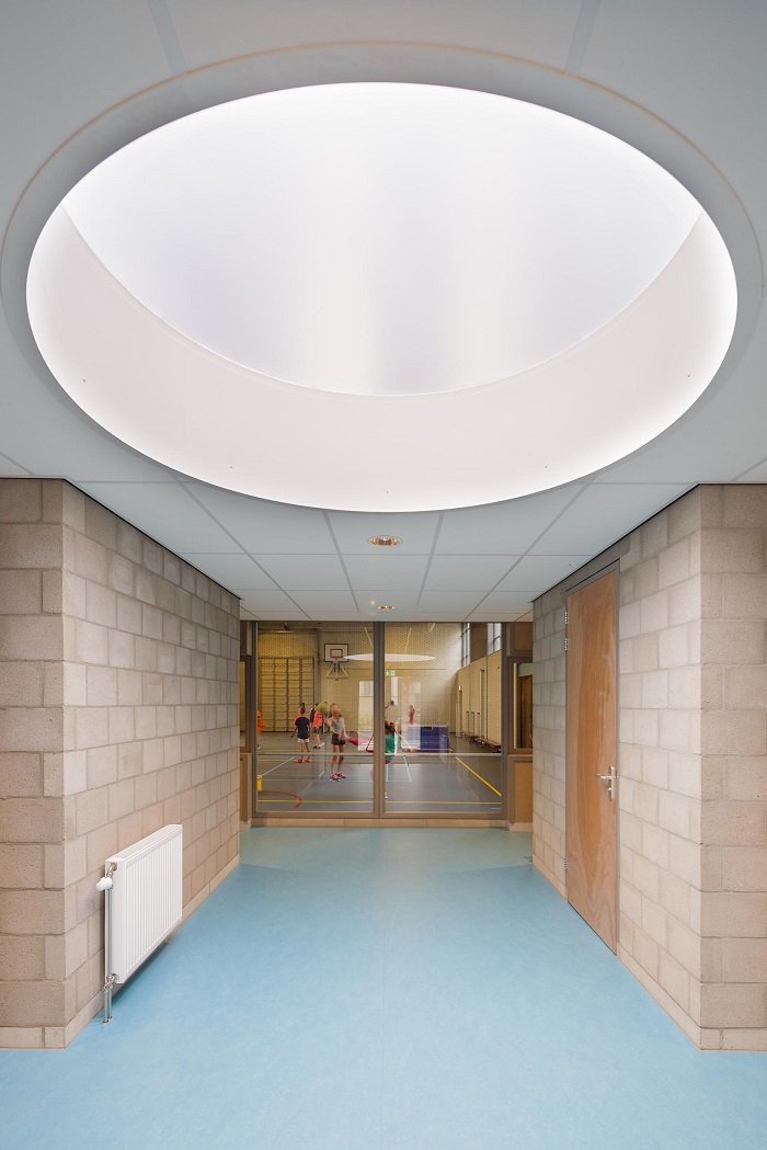 Zo is het metselwerk van de bestaande gymzaal en de nieuwbouw op dezelfde afgewerkt met slempwerk. Door het toepassen van deze ambachtelijke, typisch Brabantse afwerking is een geheel ontstaan met een uitstraling alsof het er al jaren staat. Een brede school kent verschillende gebruikers. Er is daarom gekozen voor een fijnschalig gebouw met een dorpse uitstraling.