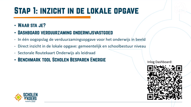 Knelpunten zoals een split incentive, gebrek aan financiële middelen en een opeenstapeling van doelen maken het niet makkelijk voor schoolbesturen. “Als het zo doorgaat, wordt het probleem dus eerder groter dan kleiner”, aldus Van Nes. “Maar voordat je nu denkt ‘we kunnen niets doen’, zijn er wel degelijk oplossing en kan iedereen heus wel aan de slag.” De adviseur noemde diverse maatregelen die genomen moeten worden, reikend van meer inzicht in de portefeuille tot een volgende investeringsimpuls. Maar vooral: “Maak prestatieafspraken, zodat de oplevering voldoet aan wat je ambieert met elkaar.”