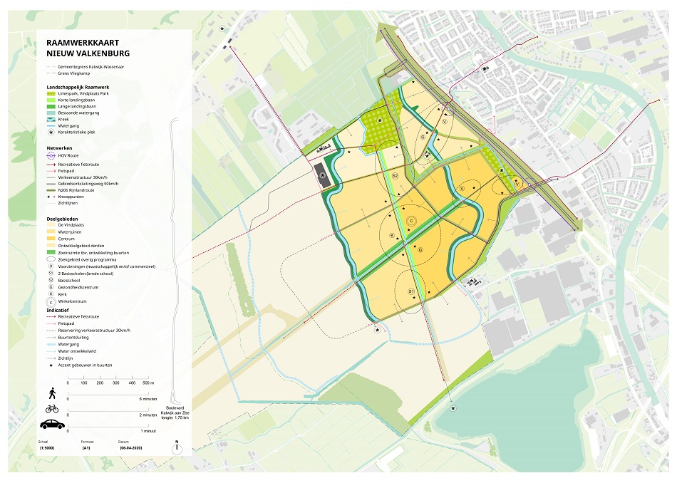 Het Rijksvastgoedbedrijf gaf KCAP opdracht om een ontwerp te maken voor het stedenbouwkundig raamwerk voor het noordelijk deel van locatie Valkenburg. Dit loopt vanaf het hangaargebied tot aan de N206. Hier komen 3.000 tot 3.500 woningen en het centrum van het nieuwe dorp. Een deel van dit gebied is in eigendom van gebiedsontwikkelaar BPD, waarmee de plannen zijn afgestemd. Het raamwerk geeft de hoofdstructuren van wegen, water en groen weer met flexibiliteit voor toekomstige ontwikkelingen. Het schetst de ruimtelijke inpassing van een duurzame en inclusieve omgeving waar uiteindelijk zo’n 12.000 tot 13.500 nieuwe inwoners zullen wonen, werken en recreëren.