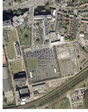 Beeld rechts: Luchtfoto van het huidige ENKA-terrein in Arnhem