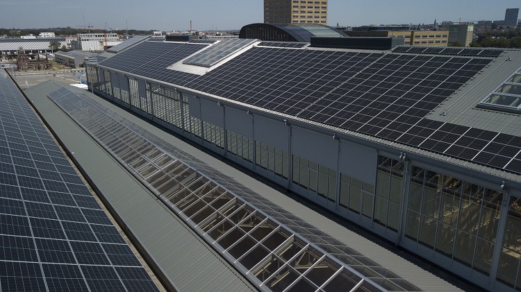 Naast talloze zonnepanelen op het dak van Gare Maritime, dragen de meters aan zonwering bij aan een energieneutraal pand.