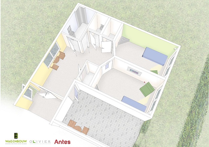 Parnassia / Anteskoos voor een samenwerking met Wagenbouw. Het bouwbedrijf is gespecialiseerd in tijdelijke huisvesting en richt zich met nameop zorginstellingen en scholen, maar ook op kwalitatieve kantoor- en industriegebouwen.