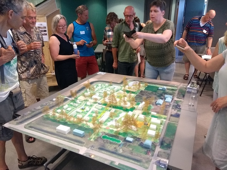 Kandidaat-bewoners bijeen rond de conceptmaquette voor Olstergaard van SVP.
