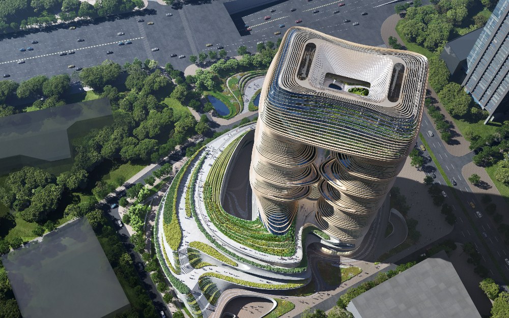 Beeld: Yidan Center (Shenzen, China; Zaha Hadid Architects/render: Atchain)