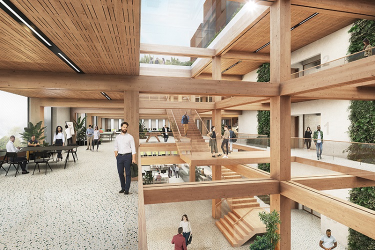 Voor het kantoorgebouw en de opleidingsfaciliteiten is met de constructeur IMD Raadgevende Ingenieurs een houten constructie ontworpen die zowel flexibel is als ook een gezonde werkomgeving creëert. Het parkeergebouw kan groeien of krimpen dankzij een demontabele constructieopzet. De gevels van weervast staal zijn demontabel ontworpen en worden deels gemaakt van lokaal geoogste materialen. De gebouwen zijn energieneutraal en wekken met het enorme PV-dak op de werkplaats zelfs grotendeels de stroom op voor bijvoorbeeld het opladen van de heftrucs of apparatuur. Dit alles maakt het complex goed veranderbaar en herbruikbaar in de toekomst.