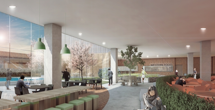 Artist impression van het restaurant met uitzicht, van VAA.