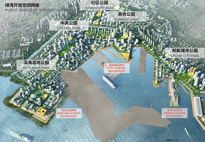 Tevens vormt het de nieuwe toegangspoort voor de hele regio: Qingdao Green Bay. Het plan respecteert, transformeert en integreert het erfgoed van de voormalige haven en opent het gebied in de richting van de historische stad. Het sterke netwerk van openbare ruimtes is de drijvende kracht achter het hele plan van de toekomstige Qingdao Cruise City.