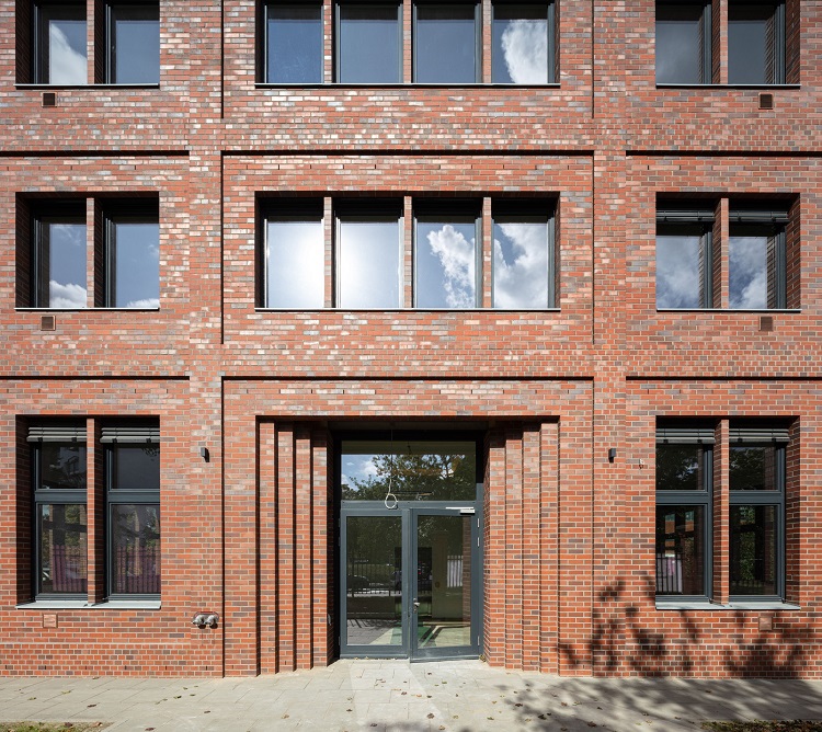 Samen met Hagemeister ontwikkelde het Berlijnse architectenbureau de projectsortering „Wilhelmsrot FUoS“, die zich met zijn roodnuances oriënteert op de naastgelegen panden. De overige gevelelementen werden in een donker grijs uitgevoerd, afgestemd op de baksteensortering. Zo harmoniëren de kozijnen, de deurpartijen, de metalen lamellen van de buitenzonwering en de buitenverlichting met de levendigheid van de baksteengevels.