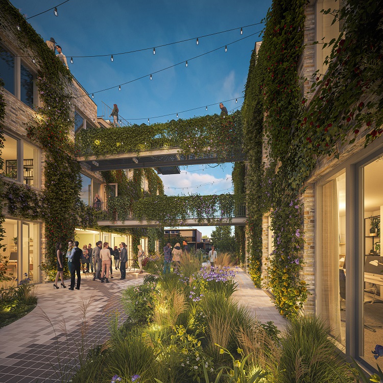 Het appartementengebouw telt 75 soiale huurwoningen en werkruimten voor jongeren tot dertig jaar. Er wordt ook een nieuwe wandelroute aangelegd die het gebouw met het station en de achterliggende woonwijk verbindt. Aannemer Hazenberg realiseert de woningen en Studio BLAD maakt het landschapsontwerp.