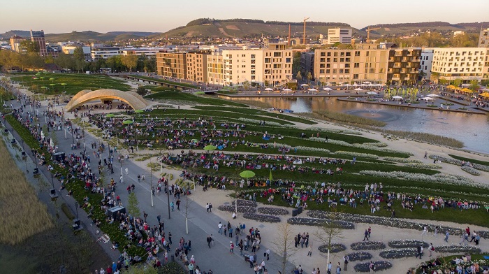 De Bundesgartenschau in Heilbronn is nog tot begin oktober geopend, zie: buga2019.de