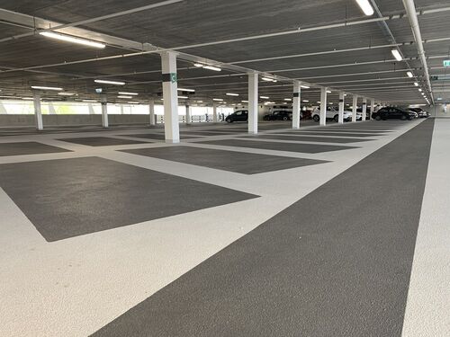 Er werd gekozen voor een scheur overbruggend systeem, deze is waterdicht en gewapend met membraan. “Het is vanzelfsprekend van levensbelang dat de GAMMA beschermd blijft tegen water, ook al rijden er auto’s over de laag boven de winkel”, vervolgt Regtvoort. “Als er wedstrijden gespeeld worden in De Kuip, staat de P+R vol en is de mate van mechanische belasting erg hoog. De afwerking moet daartegen bestand zijn.” De driedeks parkeergarage heeft als toplaag een open parkeerdek. “Dat parkeerdek krijgt te maken met allerlei externe factoren”, gaat Regtvoort verder. “De vloerafwerking moet dus bestand zijn tegen een hoge mate van thermische belasting, water en mechanische belasting, met als doel de onderliggende constructie en ruimte te beschermen. We passen het Triflex ProPark systeem toe in twee verschillende varianten. Een voor de horizontale parkeervloeren en een voor de hellingbanen. De toegepaste parkeerdaksystemen, op basis van polymethylmethacrylaat (PMMA), hebben duurzame eigenschappen [zie kader, red.], zijn slijtvast en bieden voldoende grip.”