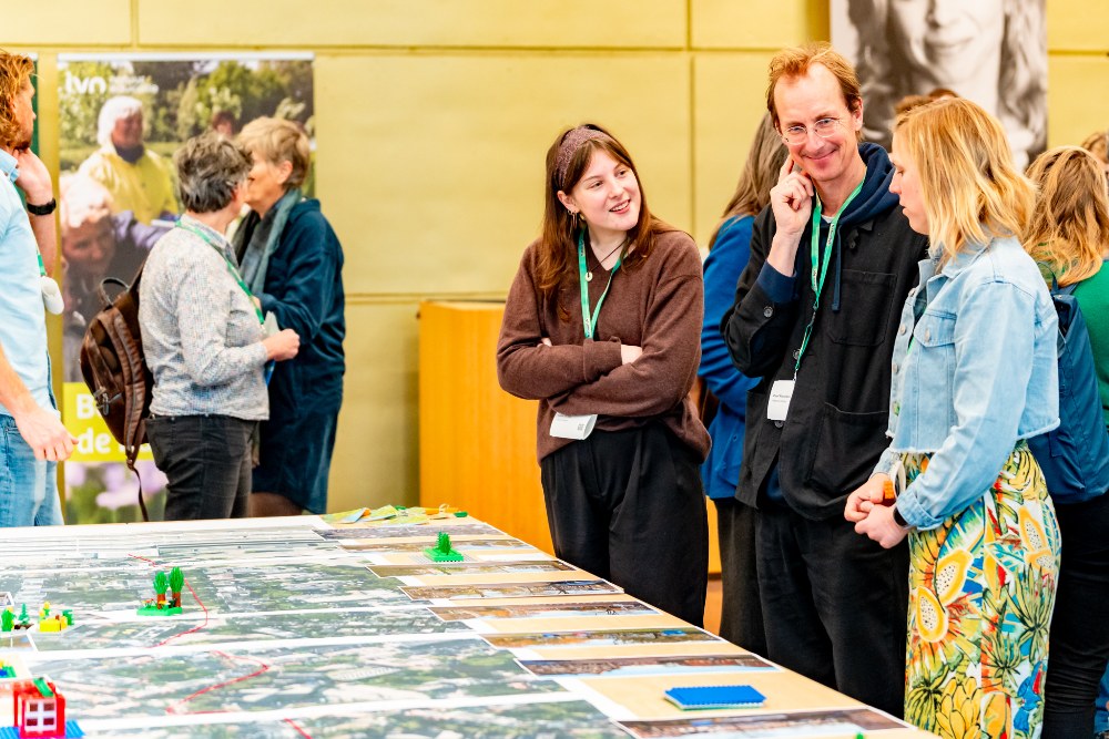 Opvallend was ook de grote stand met legoblokken en een meterslange geprinte kaart in de lounge (foto boven). Hier kon gedurende de hele dag worden meegedacht over een natuurlijker en gezondere wandelroute van het Zwolse station naar het Provinciehuis. Bezoekers konden hun ideeën met legoblokken kwijt op de vijf meter lange geprinte kaart van de ondergrond van de route. Niek en Cynthia Heijboer van Gemeenschapsontwikkeling zullen de resultaten aanbieden aan de gemeente en de provincie.