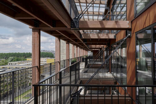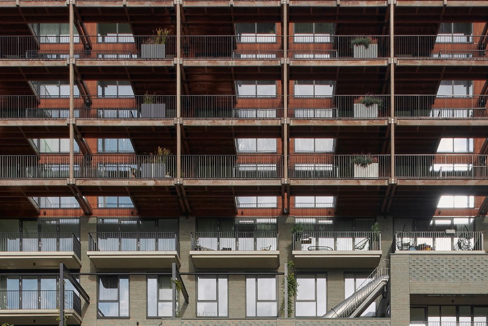 Het gebouw heeft bijzondere woningplattegronden, een stevige en toch speelse architectuur en veel ruimte waar bewoners elkaar kunnen ontmoeten. In het gebouw zitten verschillende plekken om te spelen en samen te komen, zoals een houten route langs de woningen, gedeelde huiskamers, terrassen en zelfs twee glijbanen, één binnen en één buiten.