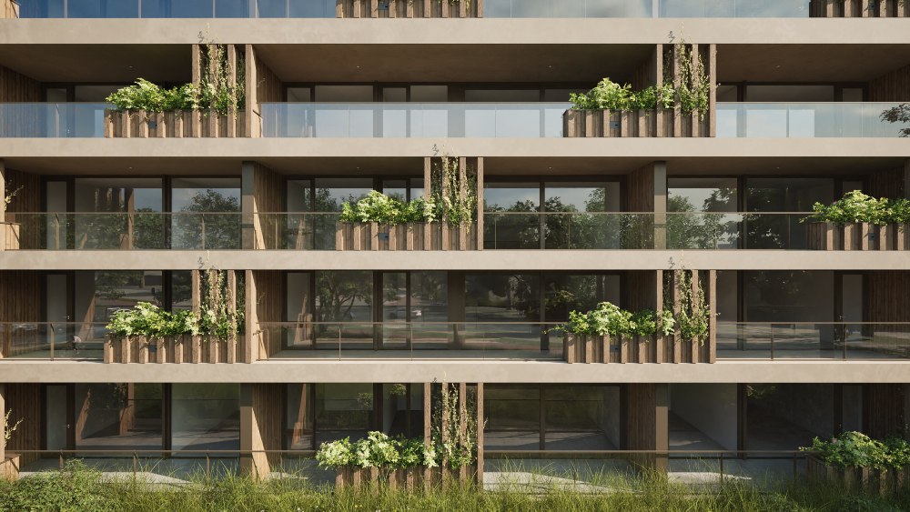 De gebouwen, met afgeronde hoeken en horizontale uitkragende banden, vormen een visuele verbinding met de omgeving. Het verspringen van de gevels zorgt voor een speels beeld en vermindert de massaliteit. Groene daken, privédakterrassen en houten lamellen met plantenbakken dragen bij aan een prettige leefomgeving en aan de biodiversiteit. Op solargroendaken worden zonnepanelen gecombineerd met vegetatie.