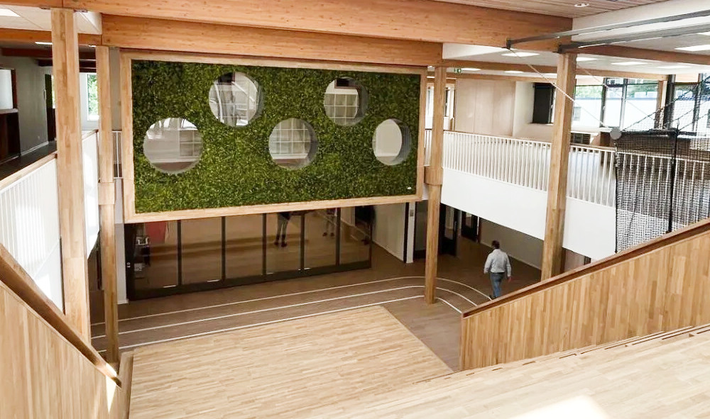 Bewegend leren vormt de kern van het onderwijsconcept en is tot diep in het ontwerp doorgevoerd. Door het hele gebouw zijn ‘beweegaanleidingen’ opgenomen die kinderen stimuleren tot actief fysiek gedrag. Ook buiten is er volop aandacht voor beweging én natuur. Met bijvoorbeeld een steiger bij de teamkamer die dienst kan doen als buitenlokaal en groene daktuinen die bijdragen aan biodiversiteit en natuurinclusiviteit.