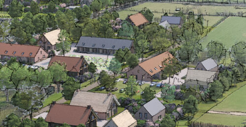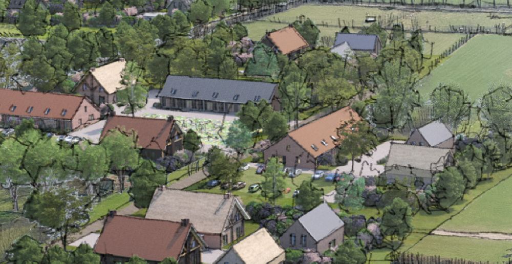 Ieder hofje gaat een eigen identiteit krijgen met, naast verschillende woningtypologieën, ook steeds weer een karakteristieke boom. Hiermee creëer je herkenbare plekken voor toekomstige gebruikers. De woningen zelf bestaan in principe allemaal uit één bouwlaag met een kap erop, waarbij de kappen de beeldbepalende elementen worden, aldus Kuijpers. “Hiermee creëren we ook echt de sfeer van een buitengebied.” De hofjes krijgen voorts eigen parkeervoorzieningen, moestuinen en gezamenlijke tuinen, terwijl alles erbuiten wordt teruggegeven voor extensieve recreatie en natuurbeleving.
