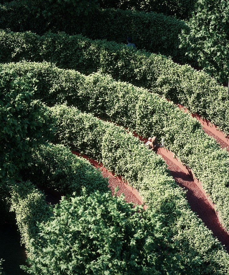 Parc de la Distance is Studio Prechts geesteskind in dit gedachte-experiment. Het ontwerp is direct geïnspireerd op de sluiting van bekende Weense parken, zoals Schönbrunn en Belvedere, toen de coronacrisis aanbrak. Bewoners konden nergens anders hun benen strekken dan op de stoep. Prechts oplossing is een park dat te allen tijde de anderhalve meter afstand waarborgt zonder de persoonlijke connectie verloren te laten gaan.