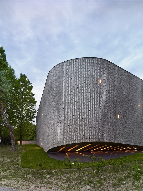 “Een ziekenhuis in het Belgische Kortrijk. Ruwe baksteen omhult de fraaie gebogen gevel. De bakstenen werden verticaal geplaatst om de geplooide kromming van het gebouw te benadrukken,” aldus de jury.