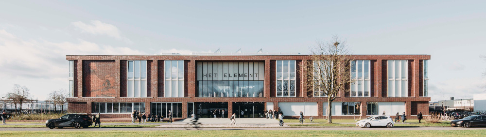 In het nieuwe schoolgebouw Het Element worden twee vmbo-scholen, drie sportzalen, een dojo en een taalcentrum samengevoegd. Door te kiezen voor een compact volume creëert De Zwarte Hond extra groene buitenruimte, korte looplijnen en een levendig centraal hart, waaraan alle verschillende clusters grenzen.