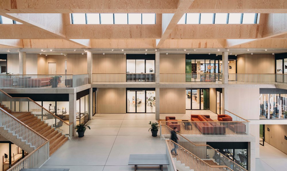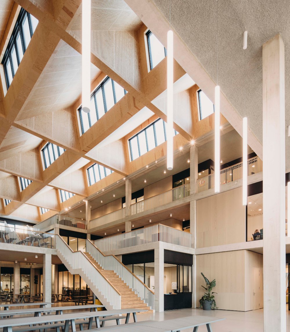 Van Kampen vertelt verder: “Het is een duurzaam gebouw omdat het compact is, met weinig transmissieverlies en ook onderhoudsvriendelijk. In de gevel hebben we baksteen gebruikt, terwijl we binnen juist hout hebben toegepast. Daardoor voelt het warm en huiselijk aan. De gebruikte materialen en details, zoals beton en aluminium kozijnen, blijven lang goed. Daarnaast ligt het dak vol met zonnepanelen.”
