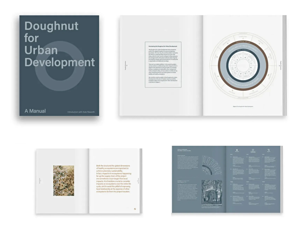 Het bekende model van de donuteconomie werd ontwikkeld door de Britse econoom Kate Raworth en is inmiddels wereldwijd omarmd. Het behelst een denk- en werkwijze, waarbij er voor iedereen voorspoed is zonder dat de ecologische grenzen van onze aardbol worden overschreden. In de Engelstalige publicatie Doughnut for Urban Development wordt deze donuteconomie (ook simpel ‘donut’ genoemd) gebruikt als model voor stedelijke ontwikkeling en bouw. Het 180 pagina’s tellende boek is het resultaat van een gezamenlijk onderzoeksproces van veertig auteurs en externe experts. De inhoud is bedoeld om te helpen bij het toepassen van donut-principes in stedelijke ontwikkeling.