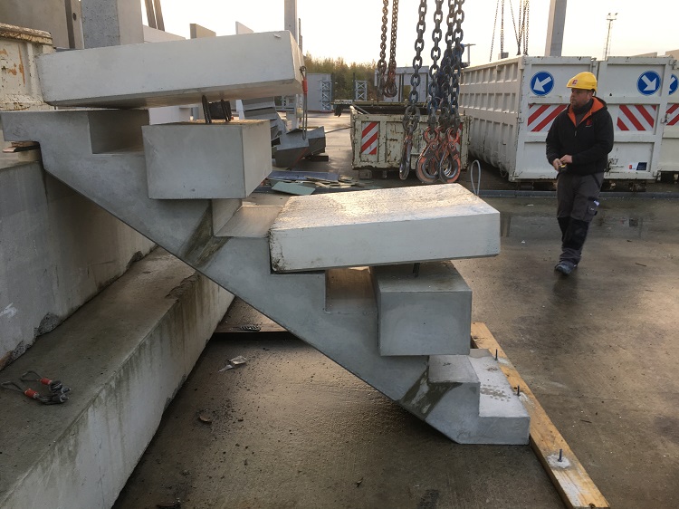 Een betontrap gewapend met vijf kilogram Concrix per m3 beton. Een minimale hoeveelheid staal als transportvoorziening in de bovenste en onderste traptrede. De trap werd getest op belasting. Waar 300 kilogram de eis is werd de belasting verhoogd tot 6000 kilogram. Het resultaat is een snellere en goedkopere productie van een milieuvriendelijker product.