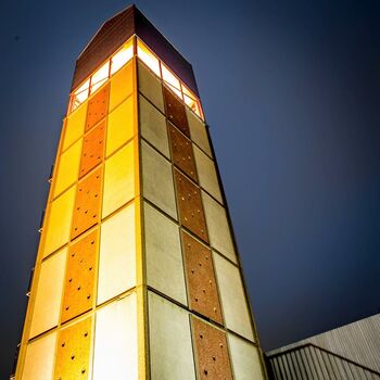 Livingproject installeerde in samenwerking met E-sites de interactieve verlichting op de bovenste verdieping van de toren. Tom Schalken, front-end developer bij E-sites, licht toe: "We gebruiken data van online kanalen als Instagram en Twitter om via het licht te tonen hoe levendig Breda is. Hoe meer berichten er over Breda verschijnen online, hoe meer de toren tot leven komt."