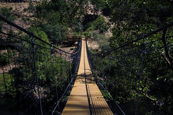 De architect koos voor hout als materiaal om de constructie zo goed mogelijk in de omgeving te passen. Tijdens de bouw werd zorgvuldig gekeken naar hoe elk onderdeel – paden, trappen en bruggen – naadloos in elkaar overlopen. Daarbij is vooral gebruik gemaakt van de omgeving om de constructie te verstevigen.
