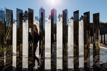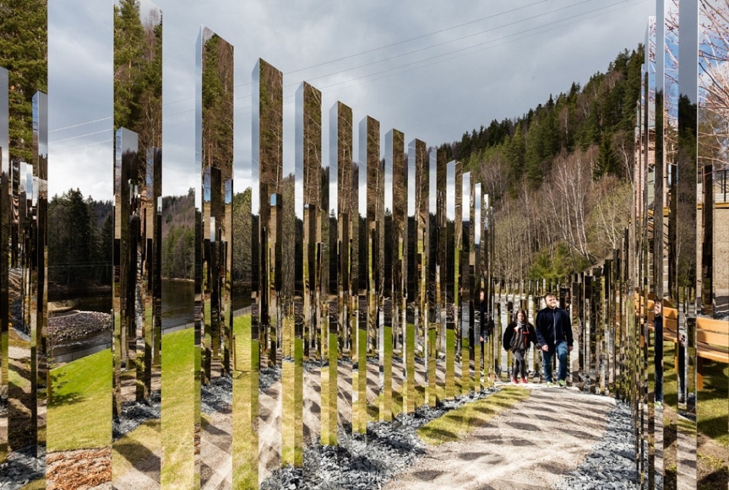 Hein zette een reeks spiegelpanelen neer en creëerde daaromheen een kronkelend wandelpad en een waterstroom. Doel: “Het creëren van een dialoog tussen de plaats en het object”. Het labyrint van spiegels omsluit drie ruimtes, die de stilte van het bijzondere gebied markeren. In de spiegelende stelen wordt de omringende natuur weergegeven.