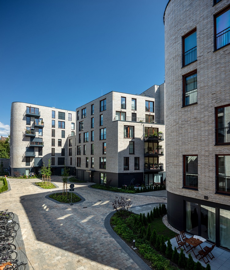 Stadsherstel bedrijven, dat was de insteek van Rolf Gnädinger en Martin Chmilecki van het Berlijnse bureau Gnädinger Architekten bij de nieuwbouw van Das Gotland. Het woningbouwcomplex met 134 appartementen ligt in de Gotlandstraße 6 in Prenzlauer Berg, aan de rand van het voormalige ambassadeterrein van de DDR. Hoofdvorm en architectuur van Das Gotland slaan een brug tussen de sterk uiteenlopende stedenbouwkundige karakteristieken van de omgeving: de stevige bestaande blokrandbebouwing van Prenzlauer Berg aan de ene kant, losjes over de aangrenzende DDR-buurt uitgestrooide panden in een groene setting aan de andere kant.
