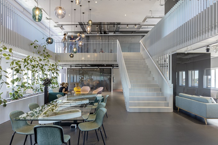 Hiervoor is een organisatie-ontwikkelplan opgesteld. Het aanpassen van de huisvesting viel hier ook onder. Zo zijn er twee grote vides in het langgerekte gebouw aangebracht om de verdiepingen met elkaar te verbinden en eenheid te creëren. Proof of the sum, een Amsterdams bureau voor interieurarchitectuur, deed het ontwerp en besloot onder andere het CO2-neutrale, gietvloervergelijkende Marmoleum Concrete van Forbo Flooring toe te passen dat mooi matcht met het lichte, meest witte en vooral ook open en duurzame nieuwe interieur.