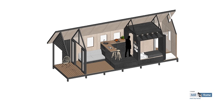 Drie jaar geleden hadden De Vor en Dijkstra van Mill Home nog nooit van de tiny house movement gehoord. Ze verdiepten zich erin, nadat ze gingen nadenken over een eenvoudiger leven zonder de druk van een hoge hypotheek of huur. Dijkstra: “Ik had een drukke fulltime baan in Zeist en stond voor de keuze: of carrière maken en meer geld verdienen of meer vrijheid. Ik wilde niet full time meer werken en bovendien terug naar het noorden.” Hij woont nu op en tijdelijk adres in Hurdegaryp, maar verheugt zich op het wonen in het microhuisje.