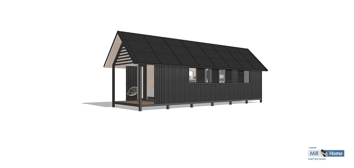 Ze ontdekten de tiny house movement die zo’n ten jaar geleden in Amerika opkwam en steeds meer navolgers krijgt. Het tweetal deed marktonderzoek naar de grootte van de vraag naar kleine huisjes. Twee jaar waren ze bezig met het ontwerp van een prototype. Nu is hun energieneutraal en duurzaam smart tiny house klaar. Het is 30 vierkante meter, tien meter lang (inclusief bordes) en heeft veel “groene” snufjes.