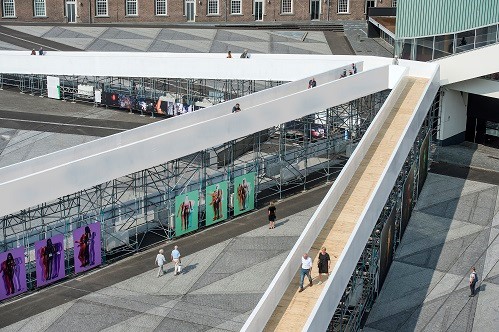 Het paviljoen beslaat een groot deel van het plein op de Chassé Promenade en is een echte trekpleister. Door de lijnen omhoog te brengen, ontstaat een opgetild pad en wordt het plein opgedeeld in driehoekige expositieruimtes. Hierdoor krijgt het paviljoen letterlijk een nieuwe dimensie.