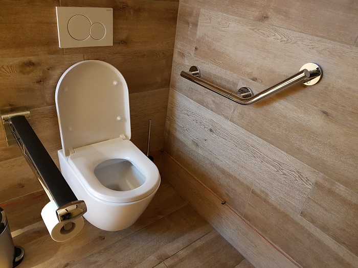 Gezien in museum MORE in kasteel Ruurlo. Een aangepast toilet dat zo in een design blad kan. Beugels zijn natuurlijk heel bekend als hulpmiddel maar ze hebben vaak een soort ziekenhuisuitstraling. Daar hebben ze in Kasteel Ruurlo geen last van. De acceptatie van het hulpmiddel zal met zo’n mooie beugel een stuk hoger liggen.