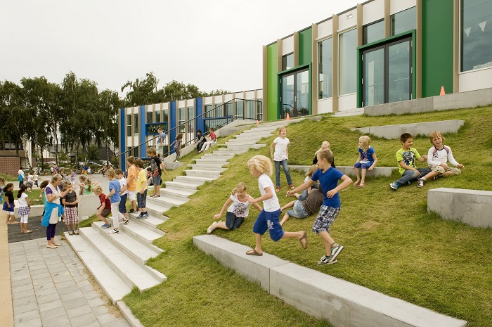 Kinderen doorlopen in de eerste twaalf jaar van hun leven de meest cruciale ontwikkelingsstadia. Dit vergt een groot verantwoordelijkheidsgevoel van de betrokken architect. Het is de taak van de architect in het ontwerp voldoende uitdaging aan te brengen om de kinderen ook twaalf jaar lang uit te dagen het beste uit zichzelf te halen. Maar - zo constateren wij – beschikbare budgetten die we als maatschappij bereid zijn te investeren in een gezonde omgeving voor de kinderen zijn vaak zeer beperkt.