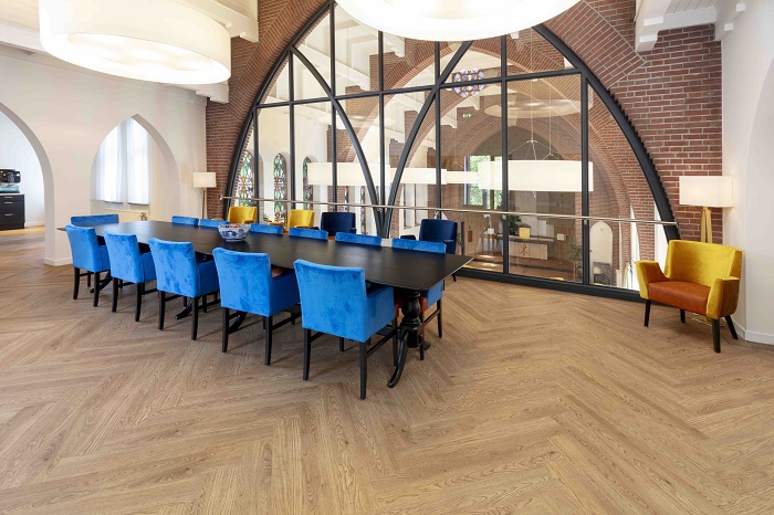 De nieuwe eigenaar, zorgorganisatie Stepping Stones, liet de verbouwing en inrichting zoals gewoonlijk over aan Geesink Weusten Architecten uit Arnhem. Dat week bij de inrichting iets af van het standaarddecor van de andere - ook monumentale - Stepping Stones huizen vanwege de sfeer van het klooster en de fraaie kapel, maar de Allura pvc-strokenvloer van Forbo Flooring werden wel weer toegepast.