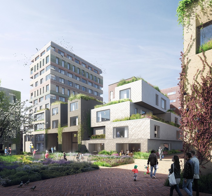 Van Dijk: “In lijn met het masterplan hebben we architecten bewust veel ontwerpvrijheid gegeven, om zo een rijk palet te verkrijgen. De diversiteit is organisch gegroeid, met NL Architect op de achtergrond om de coherentie te bewaken. Het voordeel van de inzet van meerdere architecten is dat de diversiteit niet alleen cosmetisch is, maar ook typologisch. Elk ontwerp weerspiegelt de eigen denkwijze van de architect.”