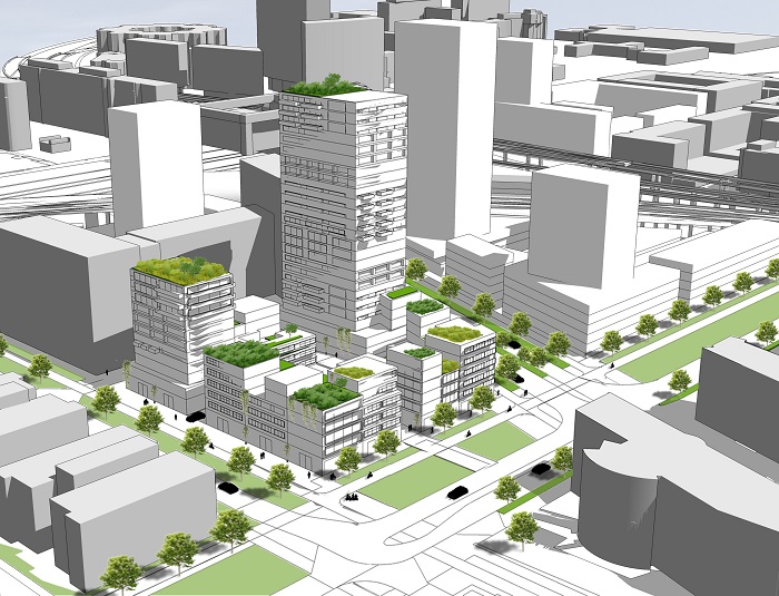 Het gebied rond Station Sloterdijk in Amsterdam-West verandert in snel tempo van een monocultuur (kantoren) in een gemengd woon- en werkgebied. Komende jaren zullen zo’n 1.500 nieuwe woningen worden gebouwd in het gebied. Vertical zet de eerste stap. DOOR Architecten, gevestigd in de Tuin van Brett, in Sloterdijk Centrum, maakte het stedenbouwkundig masterplan. Diversiteit was uitgangspunt en dat op alle niveaus. Qua doelgroepen, format en architectuur. “Heijmans wilde geen cosmetische diversiteit. Daarom zijn vijf verschillende architecten uitgenodigd, elk met een eigen palet. NL Architects coördineert de architectuur, wij zijn de overkoepelend architect die de samenhang in de gaten houdt. Dit in samenspraak met stedenbouwkundig supervisor Don Murphy, van VMX architects en namens de gemeente Amsterdam.”
